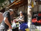 Nous faisons un détour pour monter à la cathédrale orthodoxe de la Sainte Trinité que nous avions vue de loin la veille, dominant la rive gauche de la Koura. Elle est de construction récente (post soviétique), curieusement ceinturée de remparts. Sans doute desservie par sa hauteur exceptionnelle, elle n'a pas l'atmosphère intime habituelle aux églises orthodoxes. En rentrant nous passons par une rue bordée de nombreuses petites boutiques formant un véritable marché permanent. Des prix imbattables : fruits et légumes entre 25 et 50 centimes le kg !