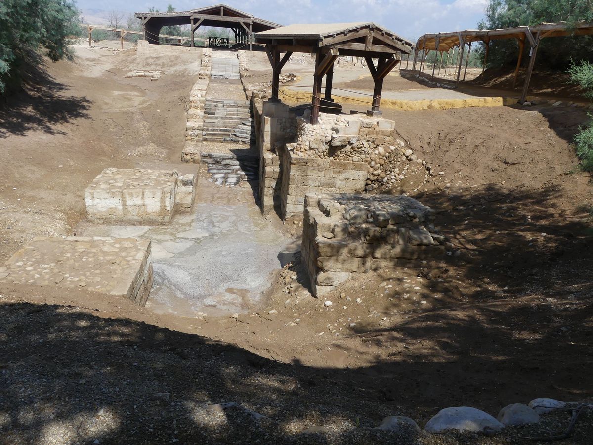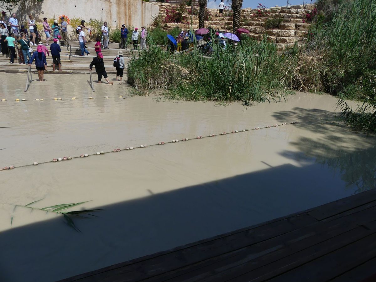 La journée suivante est consacrée aux pélérinages : nous nous rendons à Béthanie, sur les rives du Jourdain où Jean aurait baptisé Jésus. La rivière est réduite à un maigre cours d'eau boueuse. Puis nous montons par une route très raide et sinueuse au mont Nébo : c'est de là que Moïse aurait contemplé la Terre Promise, avant de mourir (mais à l'âge de 120 ans tout de même). Très belle vue sur la Mer Morte, Israël et les monts de Judée.