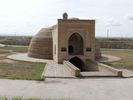 Nous roulons pendant trois heures sur une route toujours obstinément plate. A la sortie de BOUKHARA nous voyons de nombreux vergers plantés récemment. Il s'agit d'une reconversion : ils remplacent des champs de coton qui consommaient trop d'eau. Ils sont responsables de l'assèchement de la mer d'Aral. L'Amou Daria et le Syr Daria qui l'alimentaient ne l'atteignent plus.